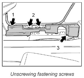 1.2. Unscrew the three fastening screws -2- and take off the footwell trim panel -3- ( -arrow B- ).