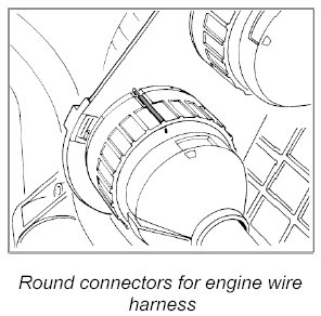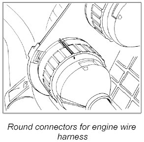 16. Disconnect plug connection for rear wire harness to engine wire harness -23-.