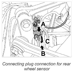 18. Disconnect plug connection for rear wheel sensor -25- at left and right.