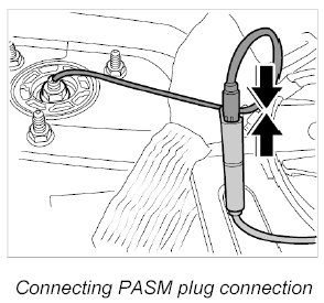 17. Connect PASM plug connection -9- at left and right.