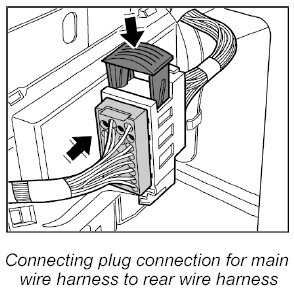 7.1. Connect rear wire harness at the two plug connections and lock it by turning the bayonet locks clockwise.
