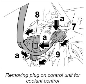 5. Pull off connector and plug connection on control unit for coolant control -7 to 9-.