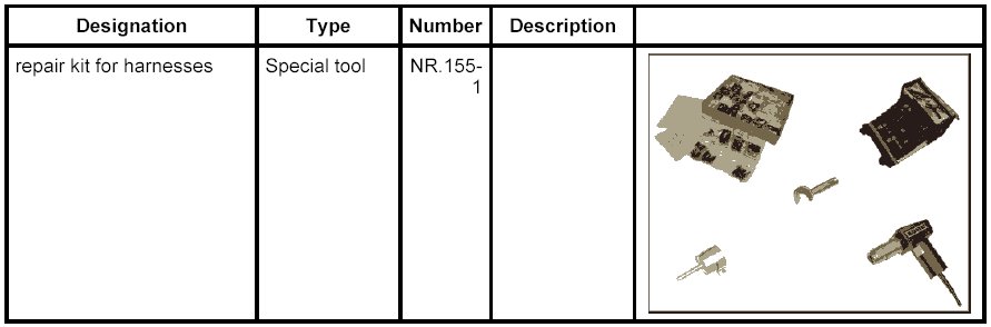 - The procedure for stripping insulation from, crimping, and shrinking/insulating the electric lines must be complied with and observed. The procedures are described in detail in the repair kit for wire harnesses NR.155-1.