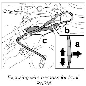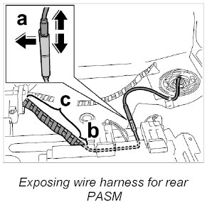 INFORMATION: When cutting the PASM wire harness, make sure there is enough length of cable left to join to the new lines.