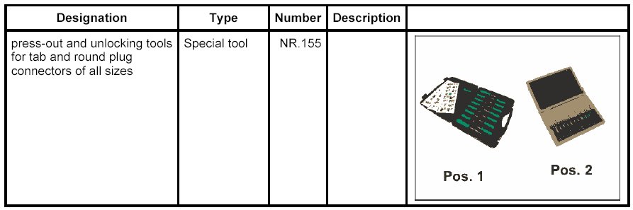 1. Open the secondary locking mechanism using the press-out and unlocking tools for tab and round plug connectors of all sizes NR.154. Insert the tool in the opening provided and lift the locking mechanism. The locking mechanism engages in the upper position.