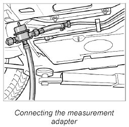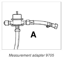 8. Connect the measurement adapter 9705 to the rapid-action coupling on the fuel line. Make sure that the plug-in coupling is fitted correctly (must engage audibly) by pulling the line apart.