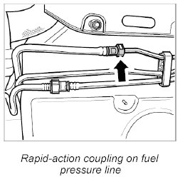13. Remove measurement adapter 9705 and attach rapid-action coupling to fuel supply line. Collect escaping fuel. Make sure that the plug-in coupling is fitted correctly (must engage audibly) by pulling the line apart.