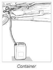 9. Place the drainage hose after the pressure regulator into a petrol-resistant container. Make sure that the container does not tip over.