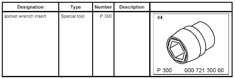 2. Remove right front wheel. Use special tool socket wrench insert P 300 to avoid damage to the rim.