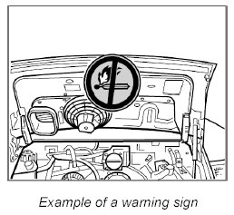 1. Place a warning sign in a clearly visible position in the work area or on the vehicle.