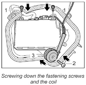 3. Push on the coil and screw it down with the fastening screw.