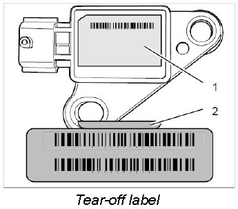 INFORMATION: If a new component (e.g. sensor, airbag control unit, airbag unit) of the airbag system has to be installed, the new component will be supplied with a barcode sticker (tear-off label).