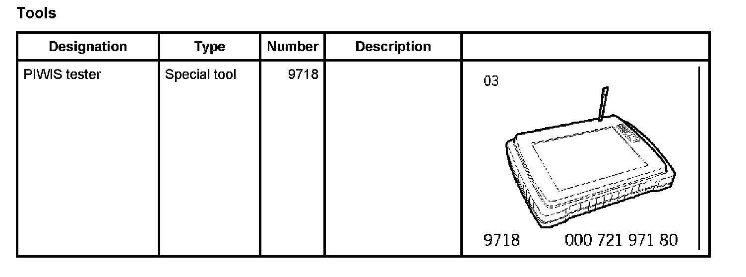 ^ The PIWIS tester 9718 instructions take precedence and in the event of a discrepancy these are the instructions that must be followed. Deviations may occur with later software versions.