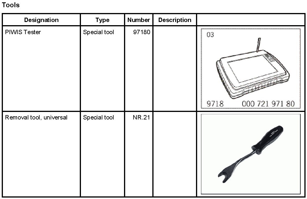3. Using the PIWIS Tester 97180, read out the fault memory and erase if required. If further faults exist, proceed in accordance with airbag diagnosis fault code.