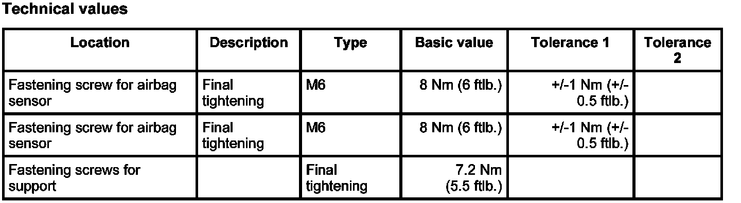 - The airbag sensors cannot be interchanged. Install the sensor listed in the Parts Catalogue.