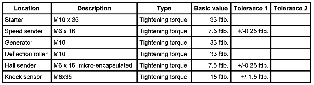 Engine electronics tightening torques