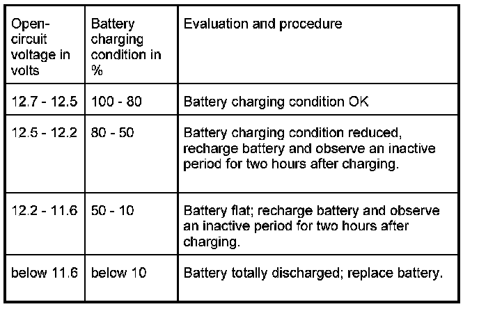 1. Check the battery charging condition according to the operating instructions for the relevant rapid-start battery charger.
