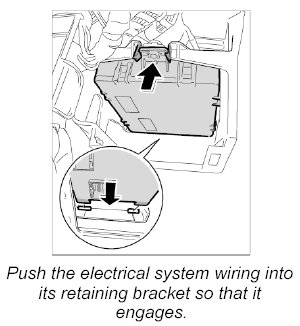 2. Push vehicle electrical system control unit upwards into the holder. It must engage properly. Make sure the electrical leads are not pinched.