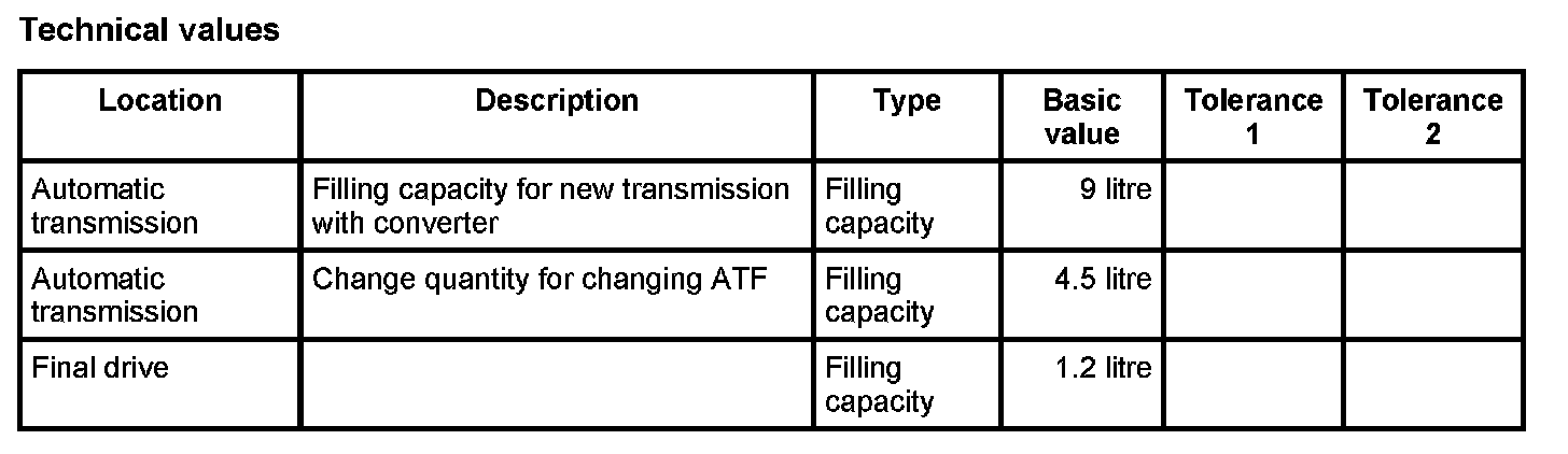 Technical data, automatic transmission