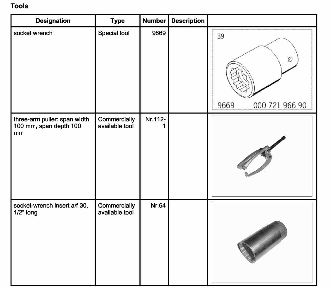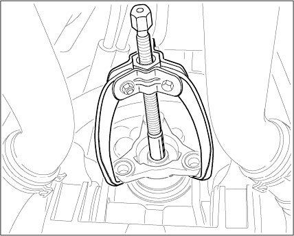 3. Pull off cardan flange using three-arm puller: span width 100 mm, span depth 100 mm Nr.112-1.