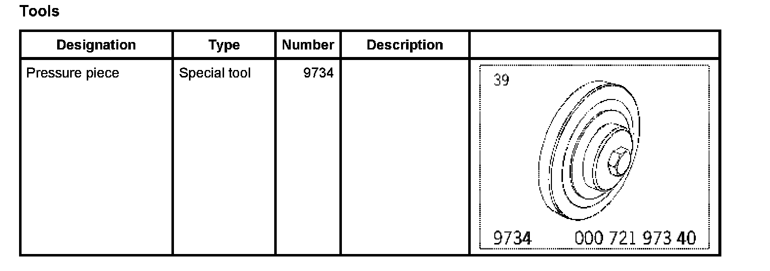 2. Thinly coat sealing lip and outer circumference of sealing ring with Vaseline and place the sealing ring on side B of pressure piece 9734.