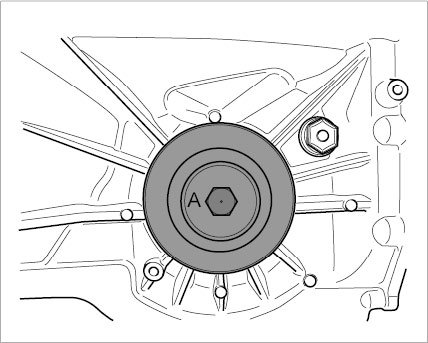 3. Hammer the sealing ring along with pressure piece 9734 completely into the transmission by hitting the hexagon-head bolt.