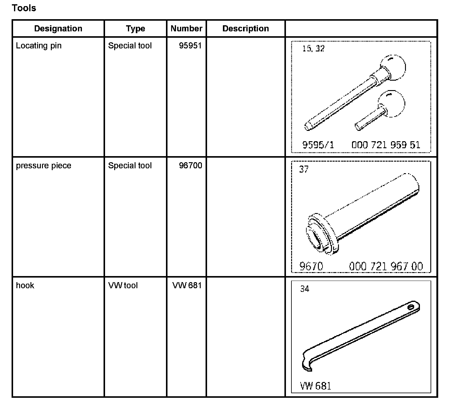 1. Locating pin 95951 (long) must be removed from transmission housing.