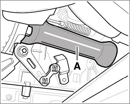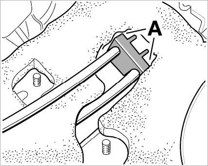 7. Bend up the tabs -A- at the body opening and push the rubber sleeve outward through the body opening.