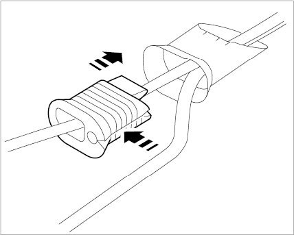 2. Apply a coating of lubricant (e.g. Contifix tire mounting paste) on the rubber sleeve and B+ wiring in the area of the body opening, insert the B+ wiring in the rubber sleeve and press rubber sleeve into the body opening.