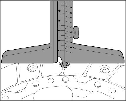 1. Place a commercially available depth gauge on the clutch lining -1- and measure the distance to the rivet head.