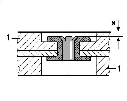Pad thickness measurement must only be done on the flanged side of the rivet head.