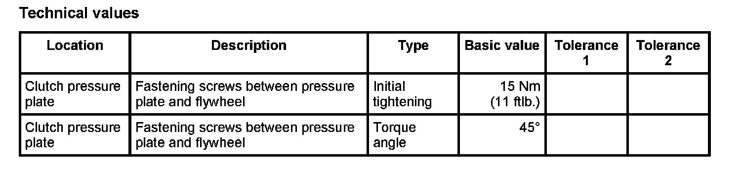To avoid deforming the clutch pressure plate, tighten fastening screws in at least 5 steps and in diametrically opposite sequence.