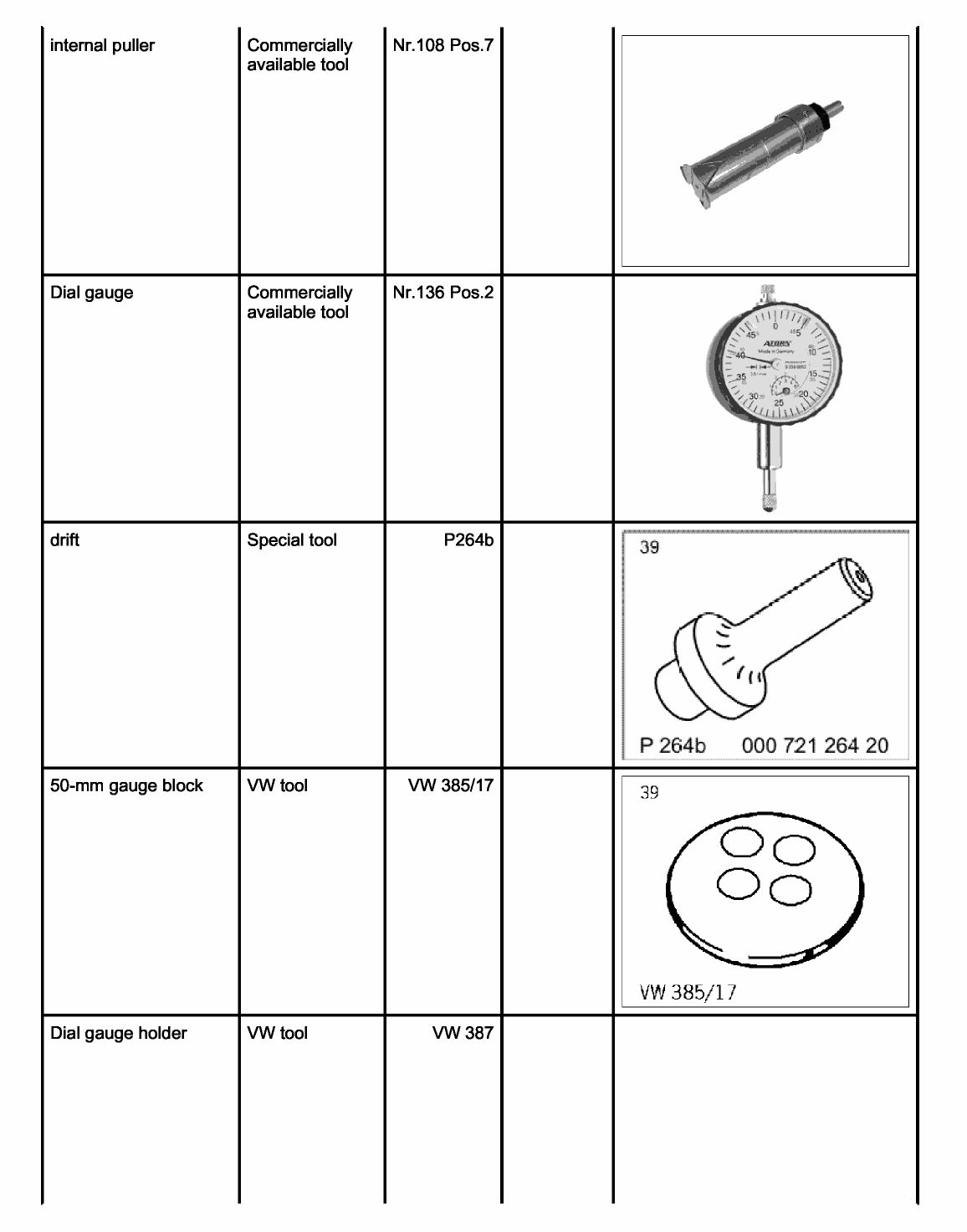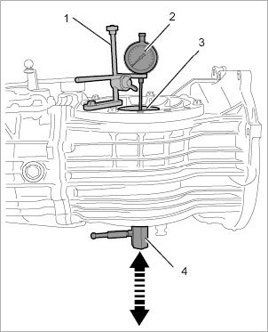6.3. Press the differential upward with adjusting device VW 521/4 and read the backlash off the dial gauge Nr.136 Pos.2.
