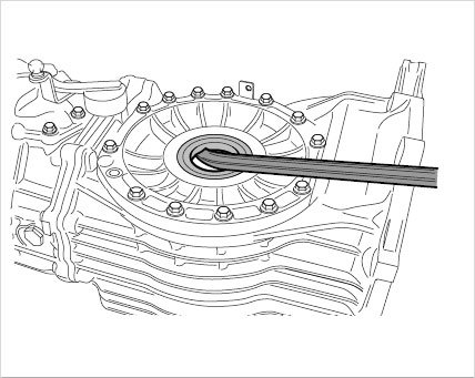 4.2. Remove outer bearing ring with adjusting shim from the transmission housing.