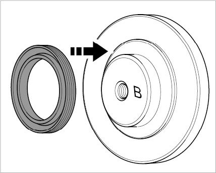 6.2. Apply a thin coat of Vaseline on the outer edge and sealing lip of the sealing ring, and place the sealing ring on side B of pressure piece 9734.