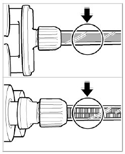 4.1. By activating the valve -arrow- allow the pressure piston to move out slowly until both components of the adhesive are visible at the mixing nozzle.
