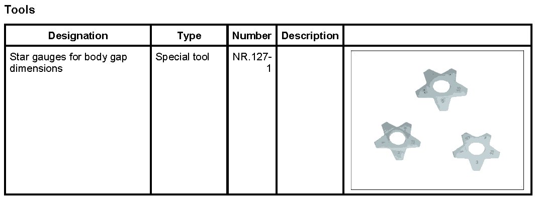 - Use star gauges to measure the gap dimensions. Star gauges for body gap dimensions NR.127-1