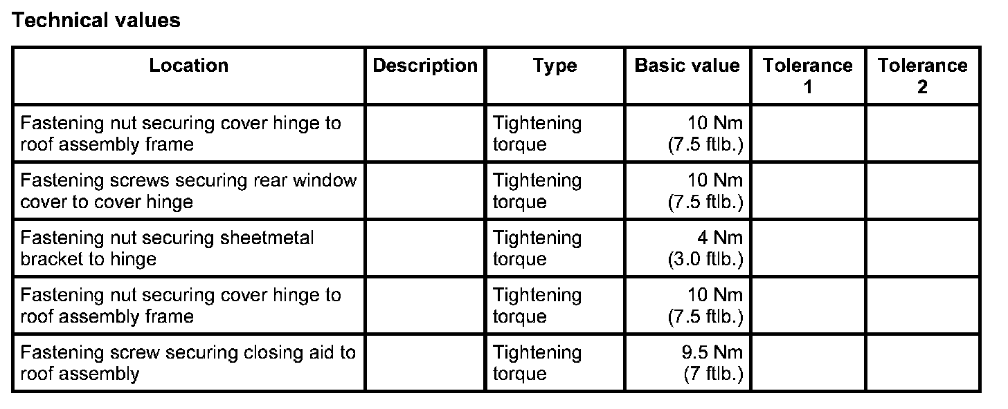 2.3. Tighten fastening nuts -2- for cover hinge at roof assembly frame. Tightening torque: 10 Nm (7.5 ftlb.)