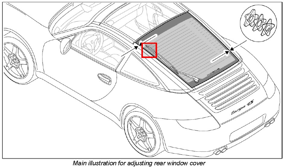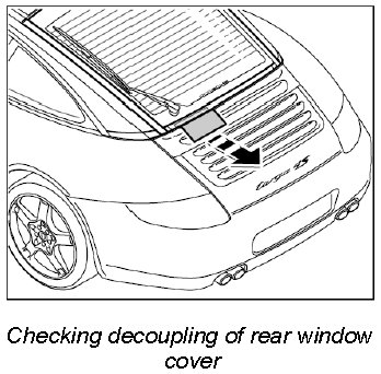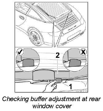 INFORMATION: It must not be possible to pull out the paper strip along the trim frame when the rear window cover is closed. If the paper strip can be pulled out, then the excess force at the buffer must be corrected. Adjust the closing aid if necessary.