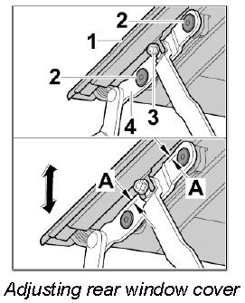 2.2. Move the rear window cover at the cover hinges to adjust the contours with respect to the sunroof cover and the rear centre panel. Refer to Diagram - body gap dimensions.