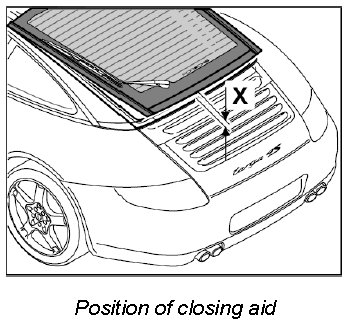 INFORMATION: The position of the closing aid affects the ejection height and the chafing noises at the rear window cover. After opening the cover, the ejection height should be -X= 16 mm-.