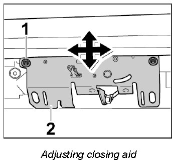 5.1. Loosen fastening screws -1- on the closing aid -2-.