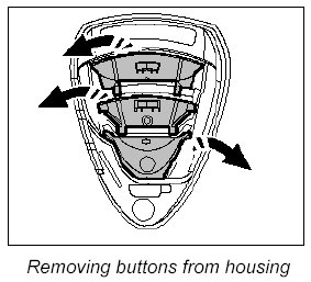4. Lift up buttons (two or three, depending on the vehicle type) and pull them out of the remote control housing.
