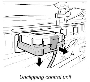 1. Unclip control unit from the holder -A-.