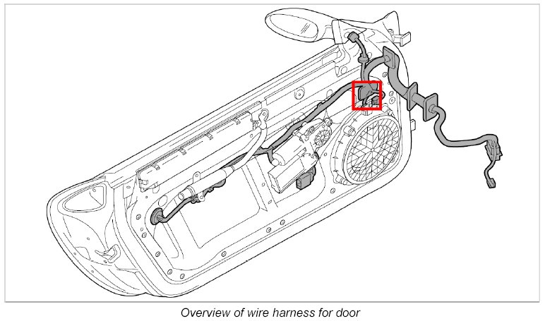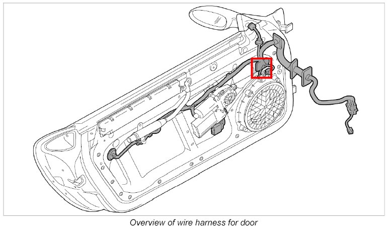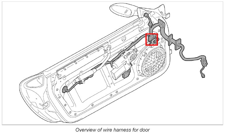 - The wire harness for door spare parts scope means the scope for fully-equipped vehicles. Depending on the vehicle equipment, connectors not required are tied to the wire harness for door using tie-wraps.