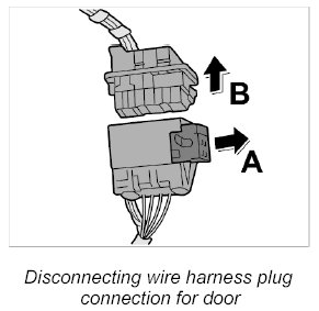 1. Disengage wire harness plug connection for door to the body.