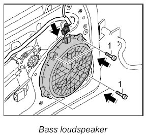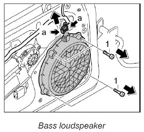 2. Release connector on bass loudspeaker -arrows a- and pull off.