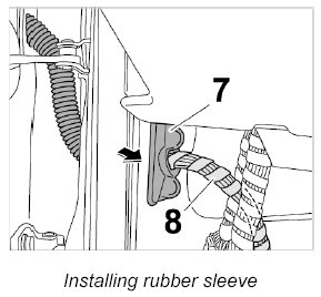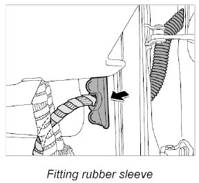 1. Push wire harness for door through the A-pillar and fit rubber sleeve.