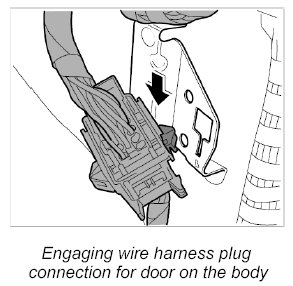 3. Engage wire harness plug connection for door on the body.