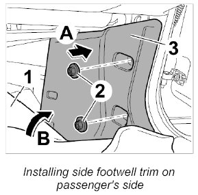 Installing side footwell trim on passenger's side
